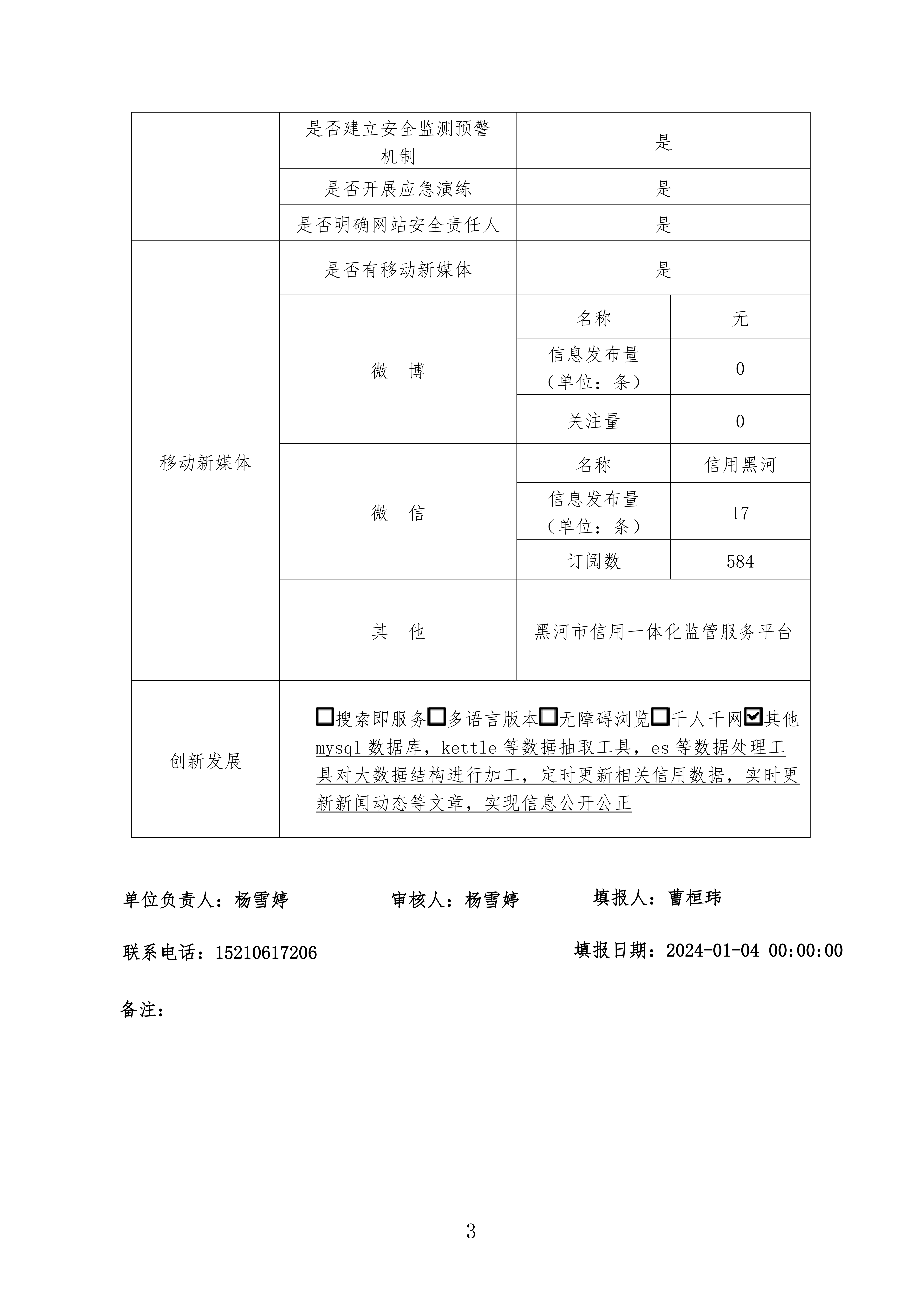 信用中国(黑龙江黑河)政府网站工作年度报表(2023年度)